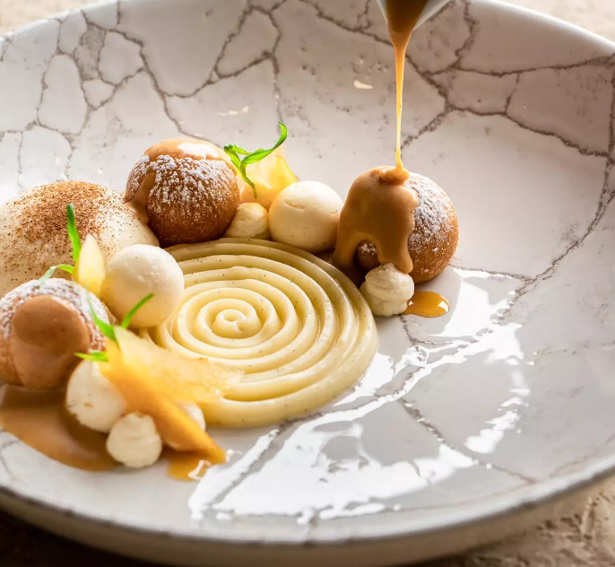 Since 2020, Tosca has been in the hands of the talented Ivan Baretti. Originally from La Spezia, Ivan revives Italian gastronomy... in his own way. With audacity and creativity, the chef offers a cuisine that he loves, diverse and refined, where Italy and its roots are ever-present. A culinary journey between land and sea, orchestrated to perfection by the chef and his team. Mise-en-bouche, starter, main course in two acts, cheese platters , desserts: Each dish is a work of art, the result of a perfect symbiosis in the kitchen that you may be lucky enough to see.